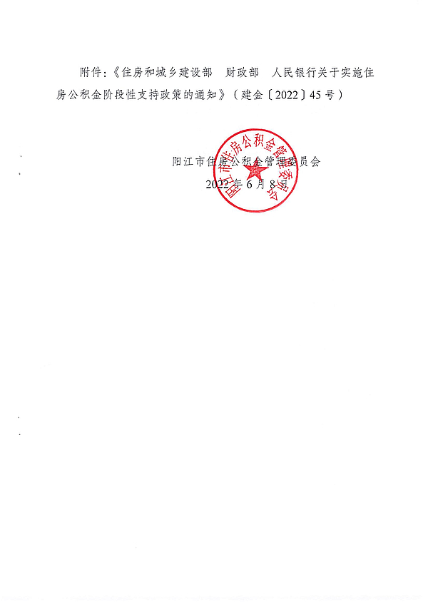 陽江市住房公積金管理委員會關(guān)于我市實施住房公積金階段性支持政策的通知