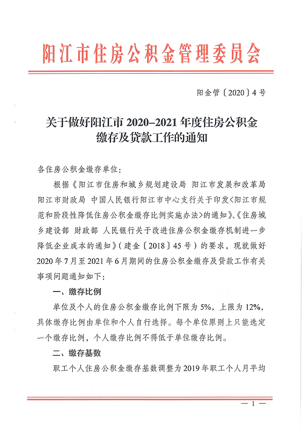 關(guān)于做好陽(yáng)江市2020-2021年度住房公積金繳存及貸款工作的通知