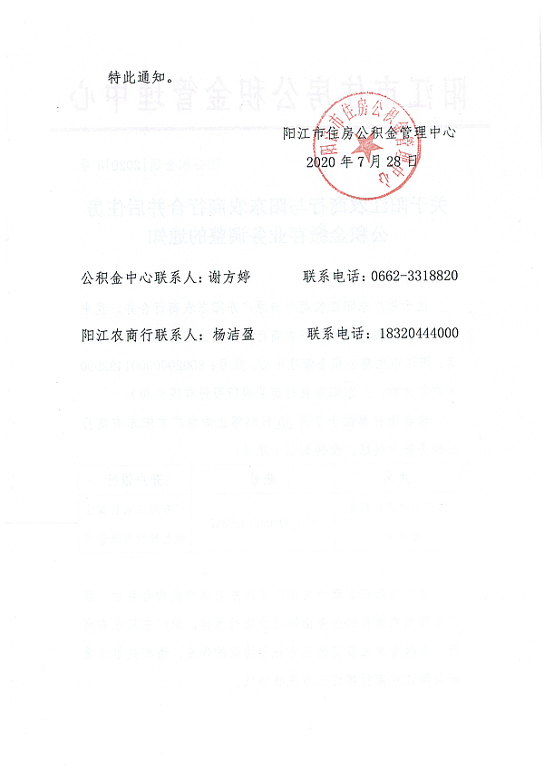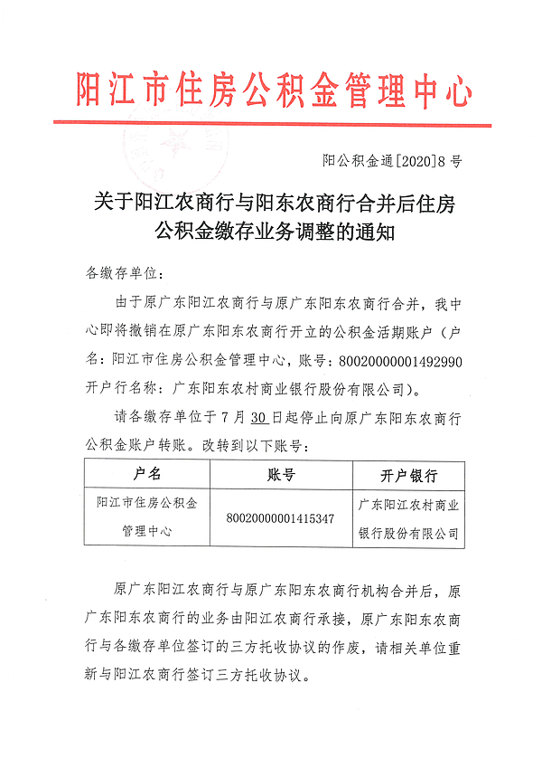 關(guān)于陽(yáng)江農(nóng)商行與陽(yáng)東農(nóng)商行合并后住房公積金繳存業(yè)務(wù)調(diào)整的通知
