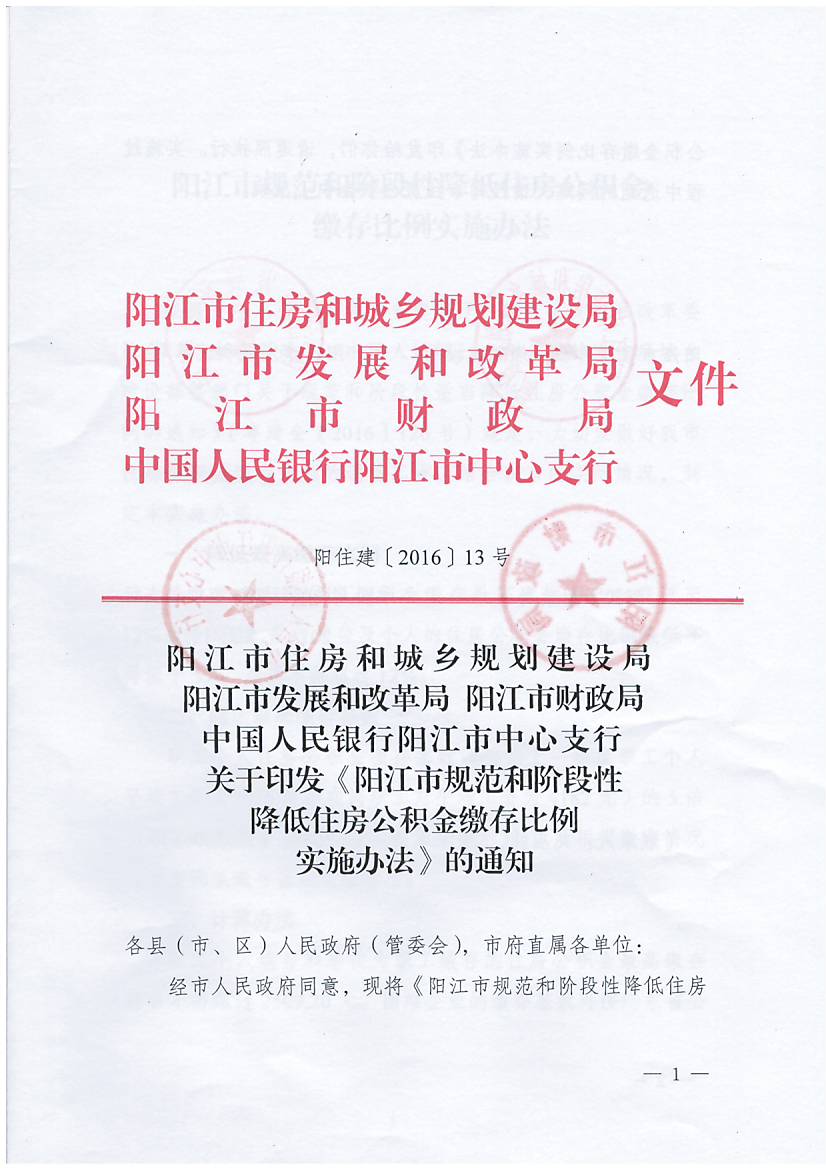 關于印發(fā)《陽江市規(guī)范和階段性降低住房公積金繳存比例實施辦法》的通知