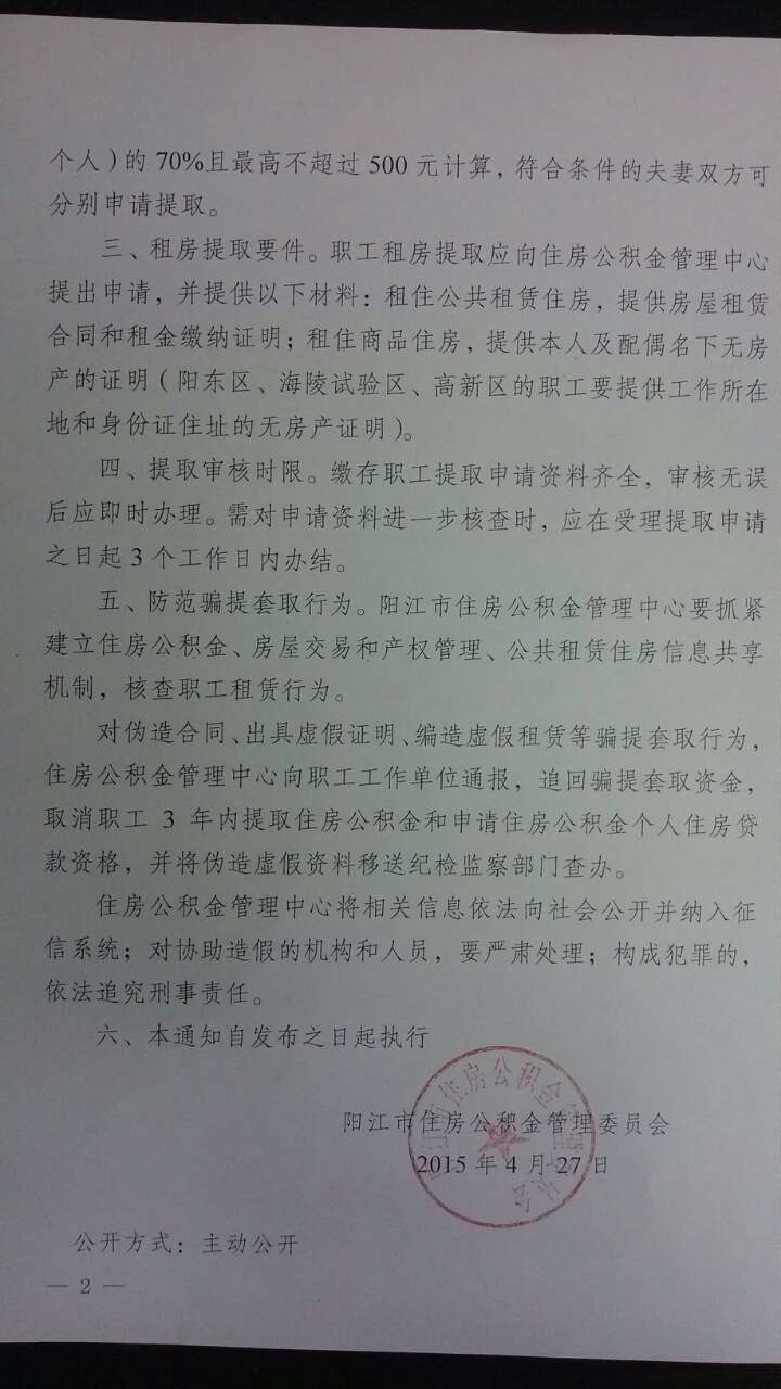陽江市住房公積金管理委員會(huì)關(guān)于放寬提取住房公積金支付房租條件的通知